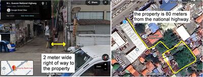 - the current right of way is only P2 meters. you can spend P5 million to secure a right of way and easily flip this property for P60 million, an easy P30 million profit.